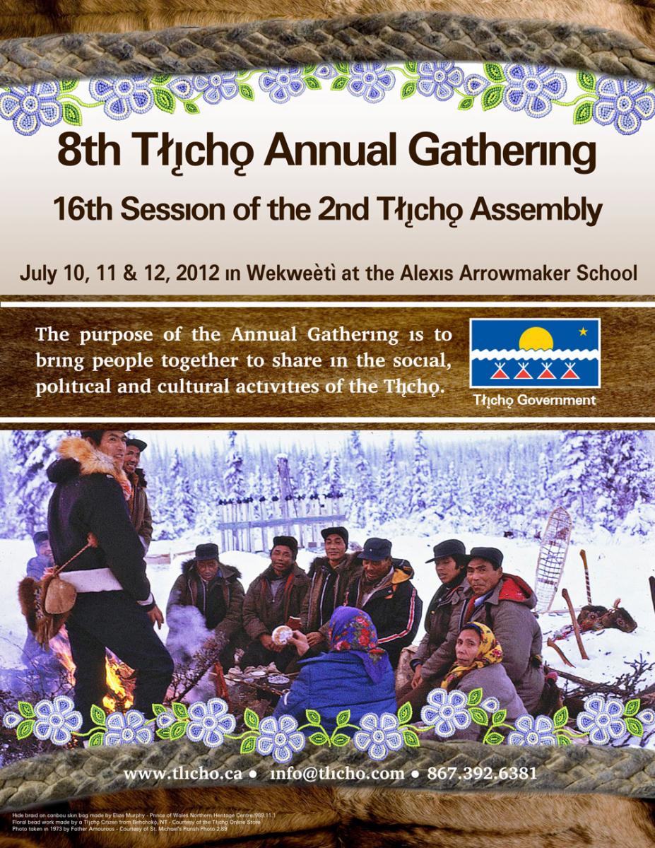 8th Annual Tłı̨chǫ Gathering and 16th Session of the 2nd Tłı̨chǫ Assembly, on July 10, 11, and 12, 2012 in Wekweètì at the Alexis Arrowmaker School.