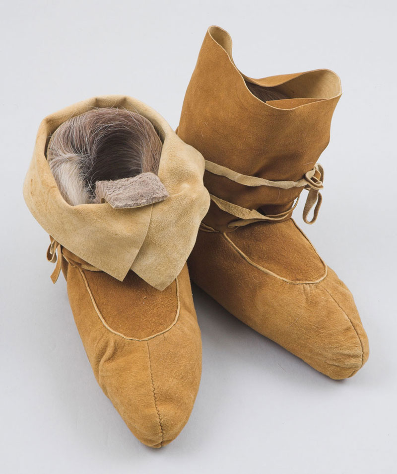 Winter moccasins with caribou skin liners.